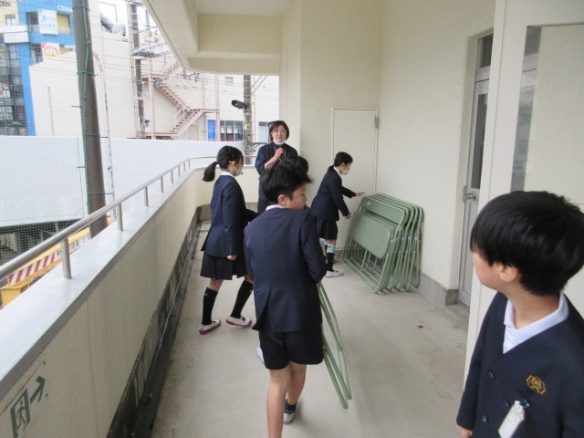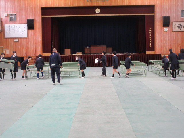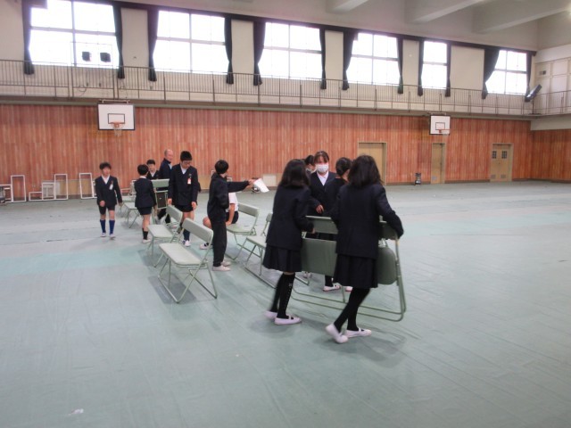 5年生が昨日に引き続き、卒業式の会場設営を手伝いました。