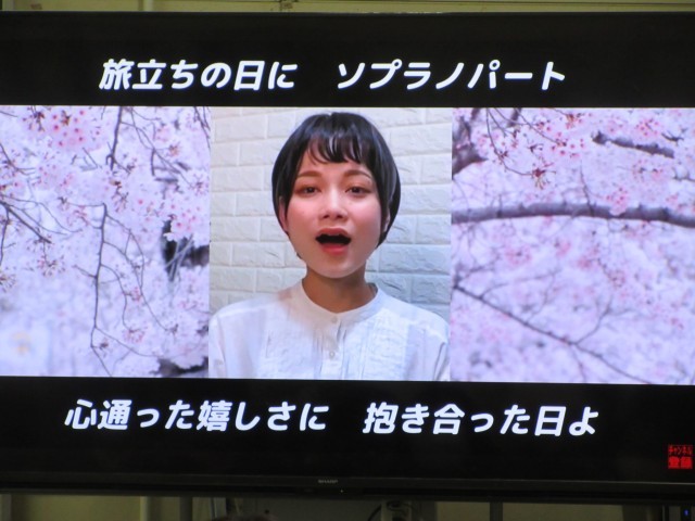 卒業式で歌う二部合唱曲「旅立ちの日に」の高い方のパートを練習しました。