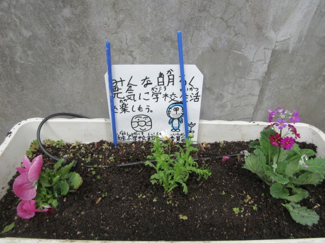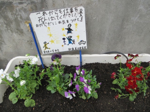 花の植え替えとともに、子どもたちからの温かいメッセージが送られています。