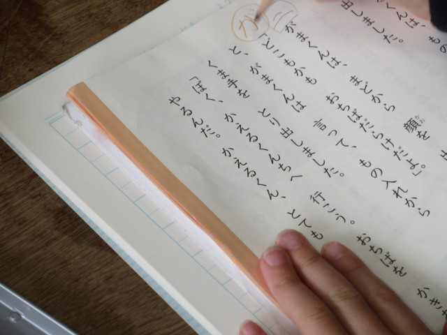 お手紙の内容を段落分けした後、がまくんかえるくんのどちらの言葉かを区別しました。