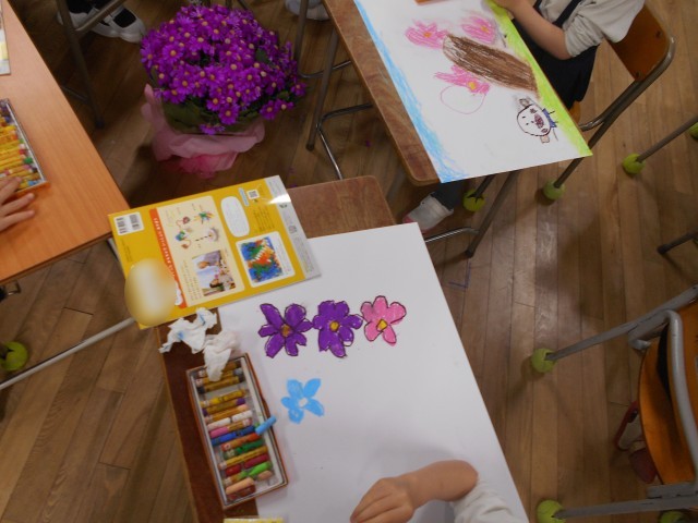 いろいろな色のパスを使って、かわいい花や生き物を描くことができました。