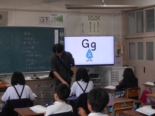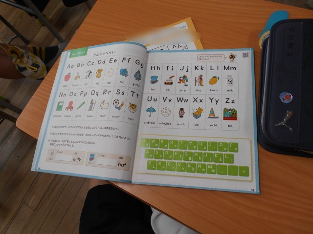 5年生の外国語(英語)アルファベットの学習です。「ABC・・・」しっかり声を出して上手に発音することができました。
