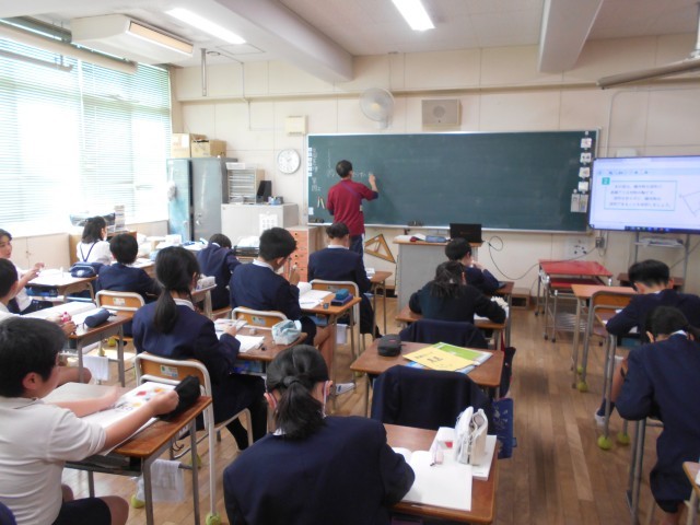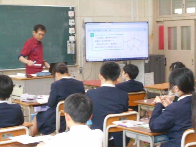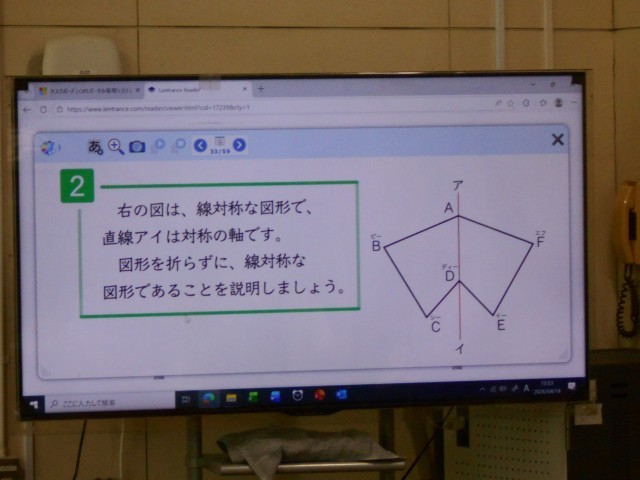6年生算数「線対称な図形」の学習です。「対象の軸に注目して・・」集中して学習に取り組みました。