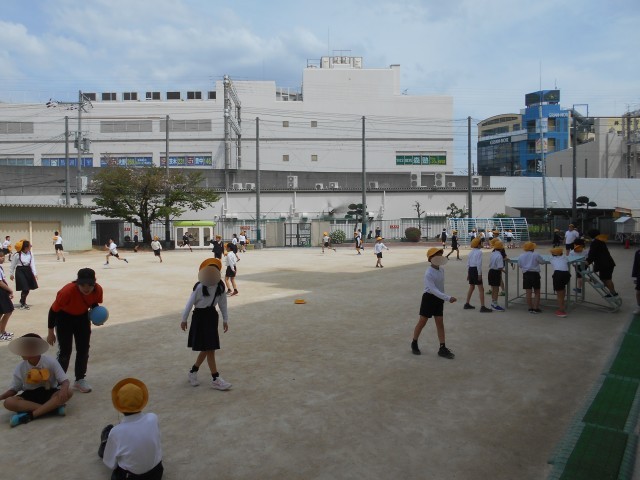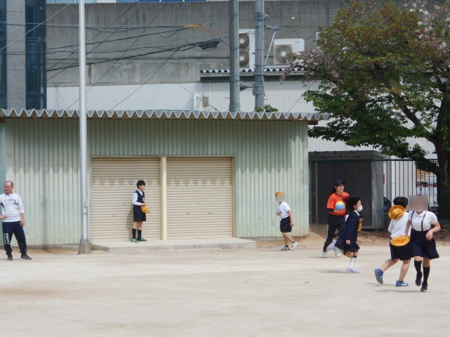 昼休みの運動場です。暖かな春の日差しがとても気持ち良いです。