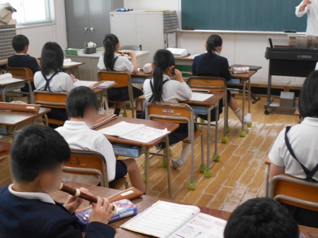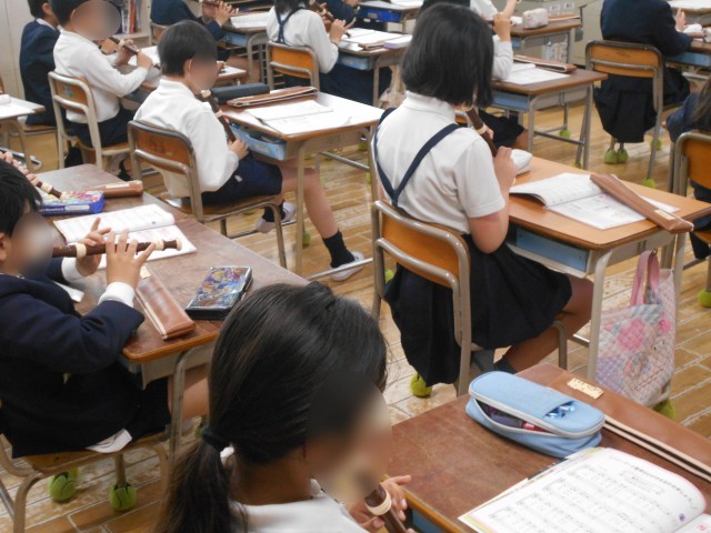 リコーダーと歌声のひびきを合わせるために、声やリコーダーの音の出し方に気を付けて、優しく歌ったり演奏したりする練習をしました。