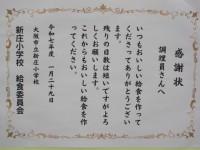 オンラインでの児童集会時に、代表委員会の子どもたちから給食調理員さんへ、感謝状を...