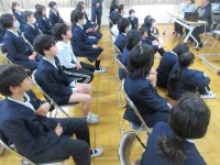 新東淀中学校の先生が来てくださり、中学校生活についてお話をしてくださいました。