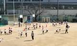 1年生 ボール けりゲームの授業の様子です。 守備のお友だちの間を通すことがで...