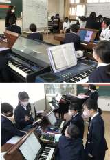 5年生、音楽科の研究授業の様子です。 「思いを表現に生かそう」を題材に、今日は「...