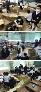 2年生 図画工作科 「だんだんだんぼーる」の授業の様子です。 やったー! 完成...