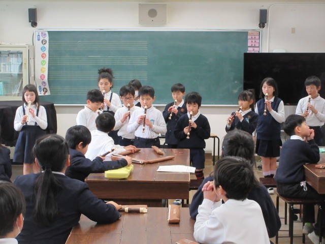 明日の学習参観で発表する演奏と歌のリハーサルを行いました。