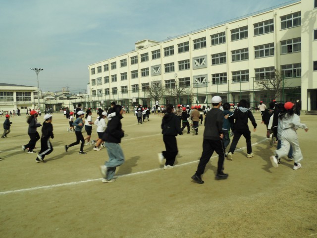 今日から、かけ足週間です。15分の中休みに全校児童が校庭に出てきて走りました。寒空のもとでもみんな元気いっぱいです。