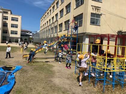 毎時間、休み時間になると子どもたちは、運動場で元気に遊んでいます。学習時間と休み時間をしっかり切り替えて過ごしています。