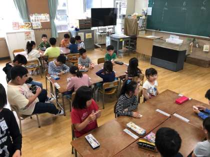 朝の時間に本年度のたてわり班編成をしました。6年生が1年生を迎えに行きました。各グループごとに教室で自己紹介、グループ名簿の作成、名札作りなどをして交流しました。