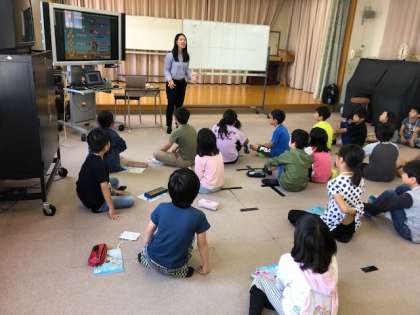 4年生は、外国語活動でジーン先生とクイズで英語に楽しみました。