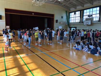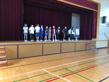 今朝の児童集会は、代表委員会の紹介をした後、たてわり班ごとの集合隊形に並ぶ活動をしました。低学年の児童も全校遠足で楽しいたてわり班活動ができるように互いにメンバーの確認をしました。