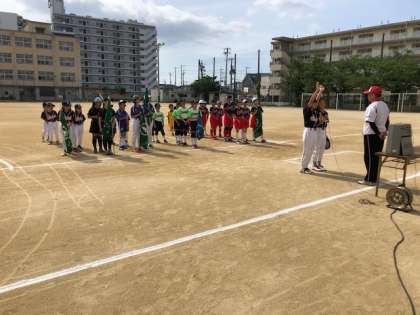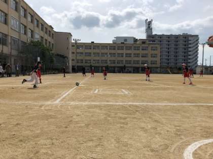 連合子供会キックベースボール・ソフトボール大会が、大隅東小学校の運動場で開催されました。