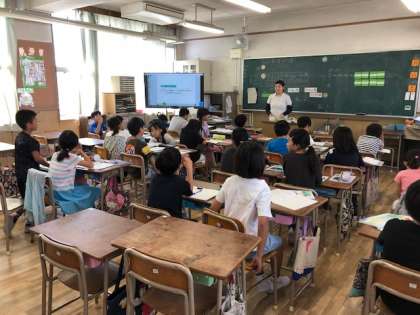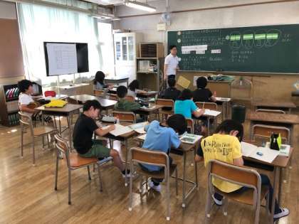 4年生は、「わり算の筆算」で何十、何百を1ケタでわる計算について学習しています。1学級を2分割して授業を進めています。