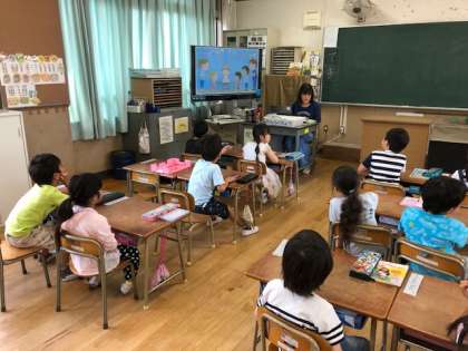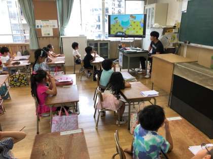 1年生から朝の時間を使って、英語に触れる活動を進めています。