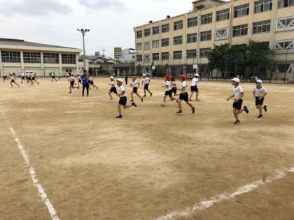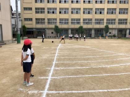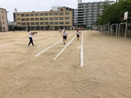 5年生の50m走、ソフトボール投げ、シャトルランの様子です。