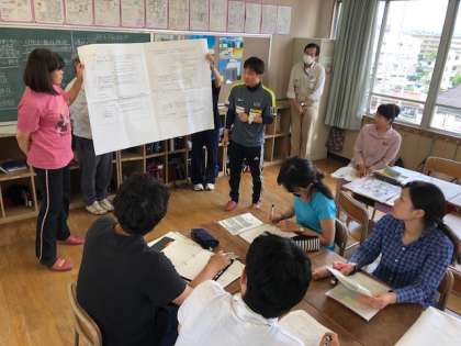 6年生の算数科の授業を参観し、指導法について研修しました。大阪市教育センターから指導主事を招聘し、本校の研究テーマ「主体的に学ぶ算数科の指導」に沿って研究協議し主体的・対話的で深い学びについて理解を深めました。