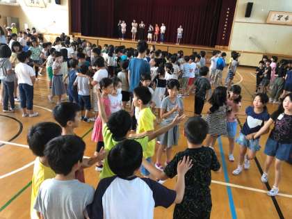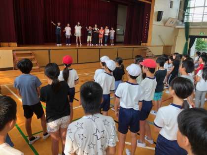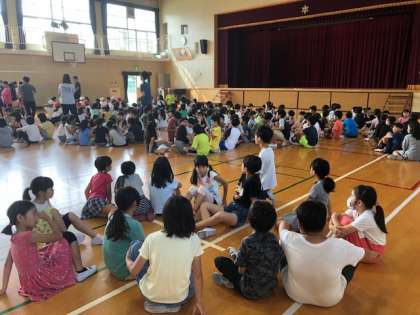 今朝の児童集会では、G20が大阪市で開催されることを機会に大阪のことをよく知っておこうと猛獣狩りゲームを大阪版で楽しみました。