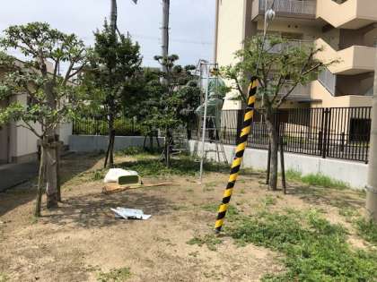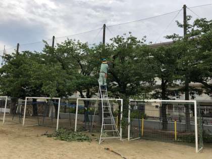 大阪市営繕職員園芸班により学校敷地内の植栽の整備を行なっています。