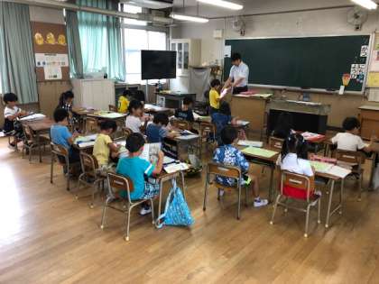 1年生が、1学期の通知票を担任から受け取りました。4月5日の入学式から今日までの登校日が67日でした。友だちと共に学び合い、遊びで戯れ合いながら、それぞれに初めての小学校生活を通して成長しました。ご家庭でもお話しをたくさんしていただきますよう、よろしくお願いします。