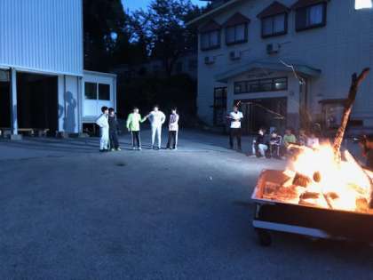 キャンプファイアは、各班の出し物を皆で盛り上げて楽しいひと時を過ごしました。