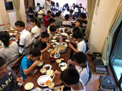 朝食をしっかり摂って、オリエンテーリングに出発します。天候の加減で、中腹の峠を折り返すコースに変更する予定です。