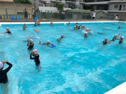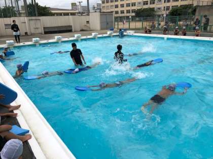 2年生が、3時間目に水泳学習の参観をしました。準備運動をしてから、シャワー、浮く・もぐる動きで水慣れをした後、久しぶりの水遊びを楽しみました。今日からバタ足の練習を始めました。水に浮く感覚をしっかり身につけていきます。