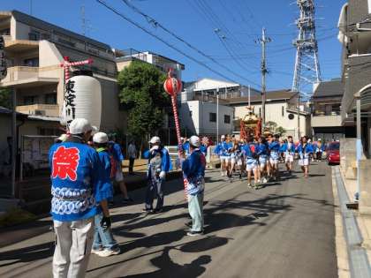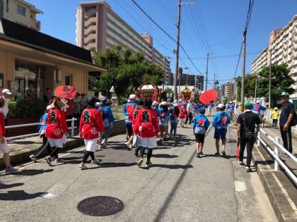 好天で強い日差しのなかを、地域関係者の皆様、ありがとうございます。町の発展と地域住民の家内安全、無病息災を願います。