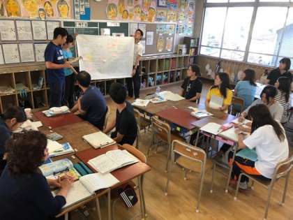 5年生の算数科の授業を参観し、放課後に大阪市教育センターより指導主事を招いて指導法について授業分析し、課題について協議し研修を深めました。