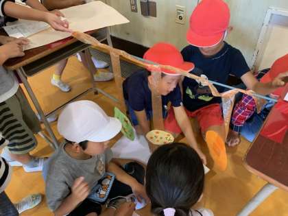 2年生は、作ったおもちゃの遊び方を分かりやすく説明して、遠慮がちな1年生には、優しく手を添えて上級生としての責任を果たしていました。