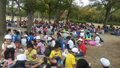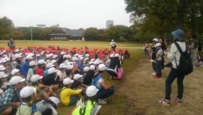 全校で大阪城公園へ出かけました。高学年がリーダーとして下級生をまとめての、たて割班活動を実施しました。それぞれが協力し、公園内をオリエンテーリングで楽しみました。昼のお弁当も、たて割班で食べました。