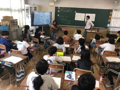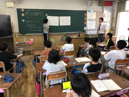 4年生が5時間目の算数科授業でわり算の筆算について学習しました。割る数が2ケタになるとどのように商を立てて計算したらよいのかを考え、発表しあいました。