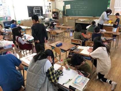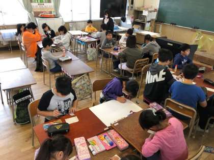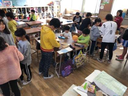 1時間目に大隅東フェスティバルのお店作りの準備を各たてわり班ごとの教室に分かれて活動しました。1〜6年生が自主的に協力して1時間を過ごしました。
