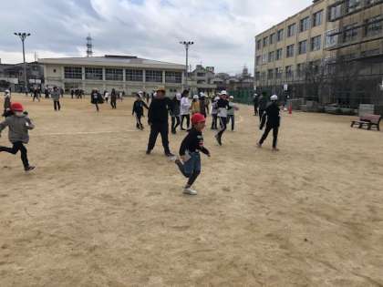 週に1回、学級の全員で運動遊びをします。ドッジボールや鬼ごっこなどで運動場は、子どもたちの元気な姿であふれていました。