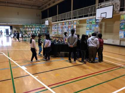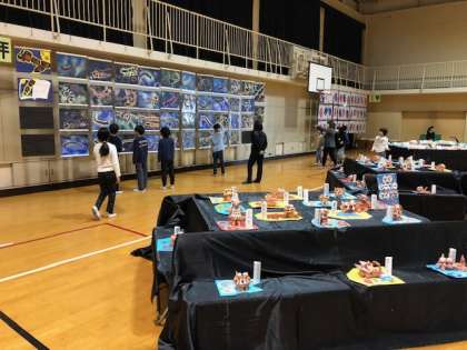 児童は、各学級ごとに作品展の鑑賞を行なっています。他学年の作品も個性的な表現や丁寧な仕上がりには、感心して興味を持って見ていました。