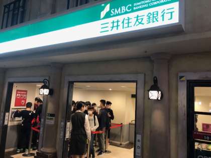 各パビリオンで活動するため銀行へ!