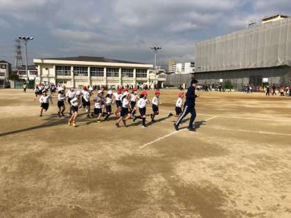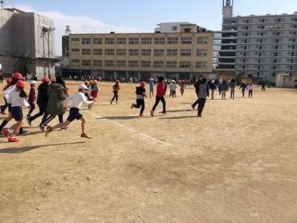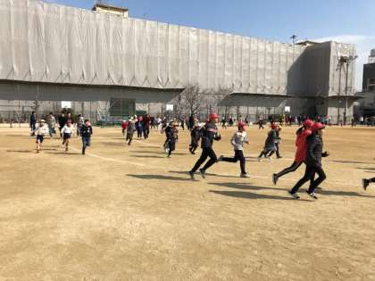 今日から今週14日(金)まで2時間目後の15分休みを使って全校で5分間のかけ足をします。始めの1周は、学級で揃って走り、その後は、自分に合った無理のないペースで走ります。寒風の中を、子どもたちは、元気に取り組んでいました。