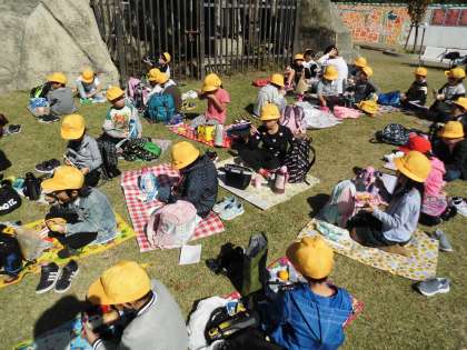 前回、延期になった遠足も今日は天候もよく、暑いくらい日でした。遠足に合わせてくれたかのように動物も動きだして、子ども達は大喜びでした。お弁当もみんなで楽しく食べられました。一日歩いて疲れたようですので、今日はゆっくりと休ませてあげてください。