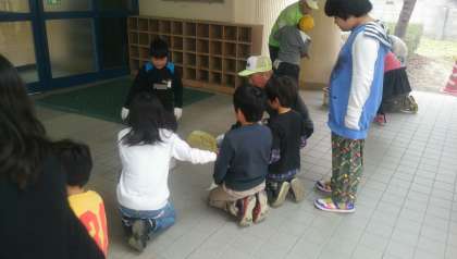 3年生の社会科の「むかしの道具とくらし」の学習をしています。今日は、ゲストティーチャーとして地域の方をお招きして、七輪の使い方を教えていただきました。苦労して火がつき、お餅を焼いて食べました。貴重な体験学習ができました。