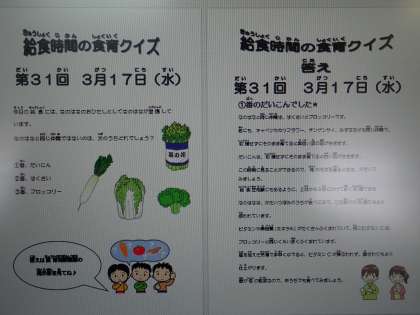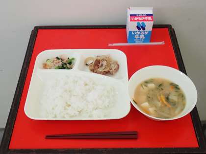 昨日の給食では、春の食材である菜の花が提供されました。旬の食材です。