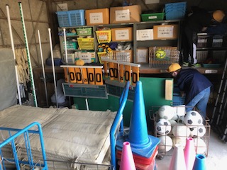 全校遠足で使用するビブスをきれいにたたんだり、体育倉庫の整理整頓をしたりしました。