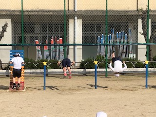 後方支持回転という難しい技をする子もいて、それを見ていた周りの児童は拍手をしていました。ほほえましい光景でした。