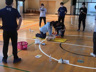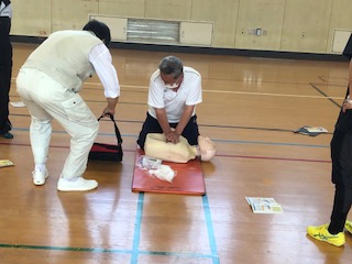 胸骨圧迫の方法とAED使用の重要性を研修しました。