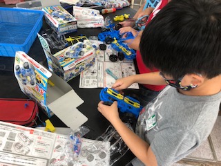 今日はまとめとして、直列つなぎを利用してモーターカーを作りました。