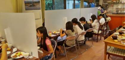 ハンバーグランチです 感染対策もしっかりとしていただいてます 全員元気に過ごしています この後キャンプファイヤーも予定通りできそうです