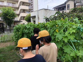 5年生は、『受粉した雌花』と『受粉しない雌花』の今後の様子を観察するための準備をしていました。